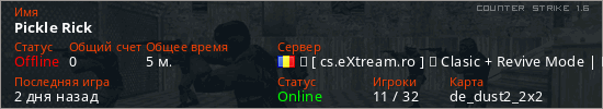 Играет на Counter Strike 1.6 сервере. Страна: РумынияПервый раз замечен 06:01 21.03.2026