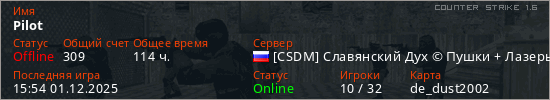 Играет на Counter Strike 1.6 сервере. Страна: РоссияПервый раз замечен 14:03 04.04.2024