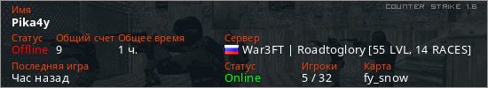 Играет на Counter Strike 1.6 сервере. Страна: РоссияПервый раз замечен 16:46 06.12.2025
