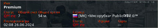 Играет на Counter Strike 1.6 сервере. Страна: РоссияПервый раз замечен 10:58 06.05.2023
