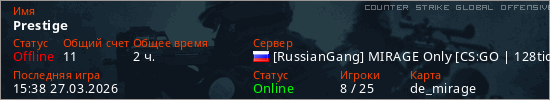 Играет на Counter Strike Global Offensive сервере. Страна: РоссияПервый раз замечен 10:52 04.03.2026