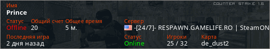 Играет на Counter Strike 1.6 сервере. Страна: СШАПервый раз замечен 22:59 05.12.2025