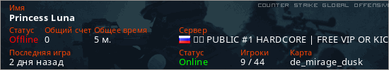 Играет на Counter Strike Global Offensive сервере. Страна: РоссияПервый раз замечен 20:04 25.03.2026