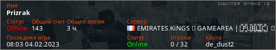 Последний раз был в сети 08:03 04.02.2023 Игрок с таким ником замечен на 34 серверах