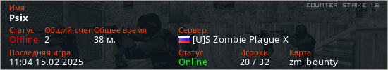 Последний раз был в сети 11:04 15.02.2025 Игрок с таким ником замечен на 30 серверах