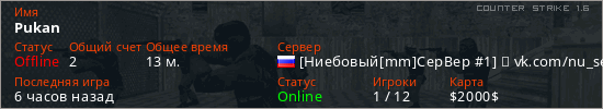 Последний раз был в сети 5 часов назад Игрок с таким ником замечен на 3 серверах