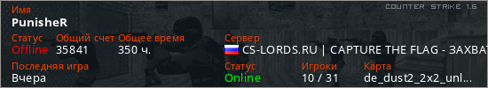 Играет на Counter Strike 1.6 сервере. Страна: РоссияПервый раз замечен 23:12 24.08.2020