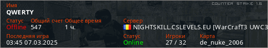 Играет на Counter Strike 1.6 сервере. Страна: РумынияПервый раз замечен 22:25 20.02.2025