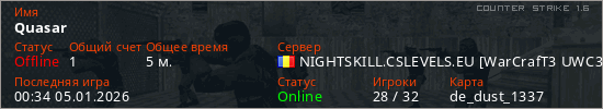 Играет на Counter Strike 1.6 сервере. Страна: РумынияПервый раз замечен 00:20 05.01.2026