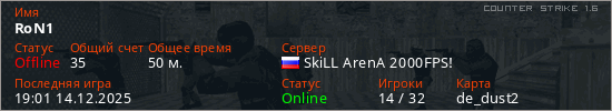 Последний раз был в сети 19:01 14.12.2025 Игрок с таким ником замечен на 12 серверах