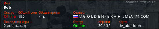 Играет на Counter Strike 1.6 сервере. Страна: РоссияПервый раз замечен 02:08 29.01.2023
