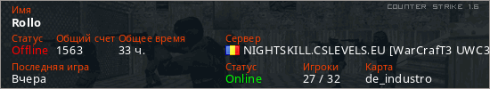 Последний раз был в сети Вчера Игрок с таким ником замечен на 11 серверах