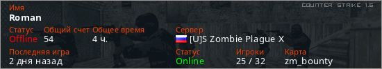 Играет на Counter Strike 1.6 сервере. Страна: РоссияПервый раз замечен 20:51 24.10.2021