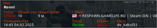 Играет на Counter Strike 1.6 сервере. Страна: СШАПервый раз замечен 12:23 04.02.2025