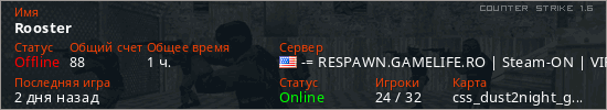 Играет на Counter Strike 1.6 сервере. Страна: СШАПервый раз замечен 09:25 10.11.2025