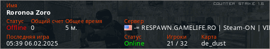 Играет на Counter Strike 1.6 сервере. Страна: СШАПервый раз замечен 05:31 06.02.2025