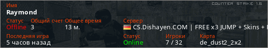 Последний раз был в сети 3 часа назад Игрок с таким ником замечен на 11 серверах
