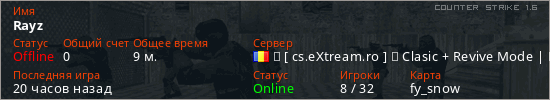 Играет на Counter Strike 1.6 сервере. Страна: РумынияПервый раз замечен 13:07 21.10.2025