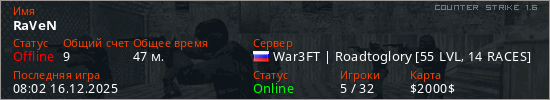 Играет на Counter Strike 1.6 сервере. Страна: РоссияПервый раз замечен 20:59 11.11.2024