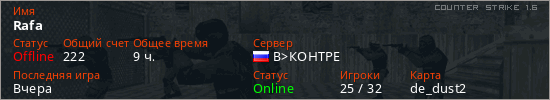 Последний раз был в сети Вчера Игрок с таким ником замечен на 19 серверах