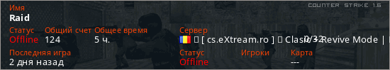 Играет на Counter Strike 1.6 сервере. Страна: РумынияПервый раз замечен 18:44 21.09.2025