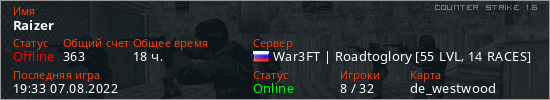 Играет на Counter Strike 1.6 сервере. Страна: РоссияПервый раз замечен 10:55 26.03.2022