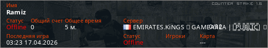 Играет на Counter Strike 1.6 сервере. Страна: ФранцияПервый раз замечен 03:19 17.04.2026