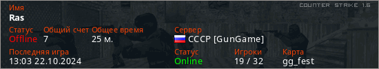 Играет на Counter Strike 1.6 сервере. Страна: РоссияПервый раз замечен 10:00 12.12.2023