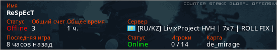 Играет на Counter Strike Global Offensive сервере. Страна: КазахстанПервый раз замечен 14:47 28.10.2025