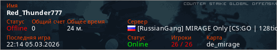 Играет на Counter Strike Global Offensive сервере. Страна: РоссияПервый раз замечен 23:27 04.03.2026