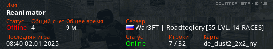 Играет на Counter Strike 1.6 сервере. Страна: РоссияПервый раз замечен 19:26 04.10.2024