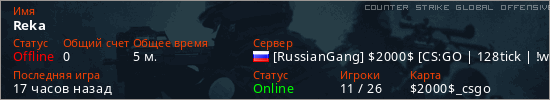 Играет на Counter Strike Global Offensive сервере. Страна: РоссияПервый раз замечен 20:18 11.03.2026