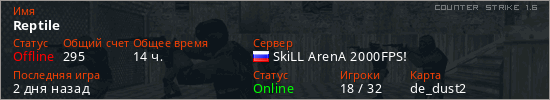 Последний раз был в сети 2 дня назад Игрок с таким ником замечен на 10 серверах