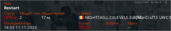 Играет на Counter Strike 1.6 сервере. Страна: РумынияПервый раз замечен 17:53 03.11.2024