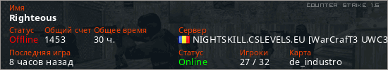 Последний раз был в сети 6 часов назад Игрок с таким ником замечен на 7 серверах