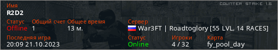Играет на Counter Strike 1.6 сервере. Страна: РоссияПервый раз замечен 13:13 17.02.2022