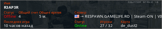 Играет на Counter Strike 1.6 сервере. Страна: СШАПервый раз замечен 21:33 17.01.2026