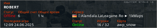 Играет на Counter Strike 1.6 сервере. Страна: ГерманияПервый раз замечен 00:26 18.04.2024
