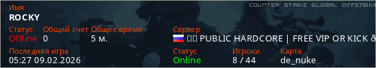 Играет на Counter Strike Global Offensive сервере. Страна: РоссияПервый раз замечен 05:21 09.02.2026