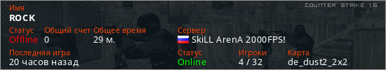Играет на Counter Strike 1.6 сервере. Страна: РоссияПервый раз замечен 16:31 23.04.2023