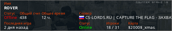 Последний раз был в сети 2 дня назад Игрок с таким ником замечен на 10 серверах