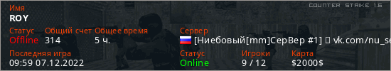 Играет на Counter Strike 1.6 сервере. Страна: РоссияПервый раз замечен 15:32 11.05.2022
