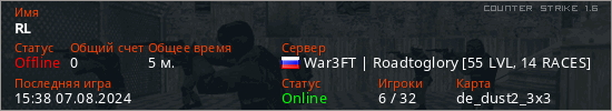 Играет на Counter Strike 1.6 сервере. Страна: РоссияПервый раз замечен 15:34 07.08.2024