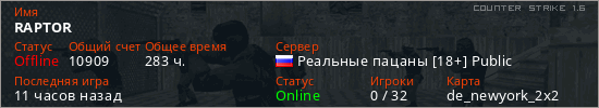 Последний раз был в сети 9 часов назад Игрок с таким ником замечен на 13 серверах