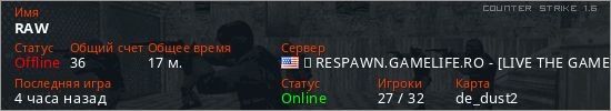 Играет на Counter Strike 1.6 сервере. Страна: СШАПервый раз замечен 11:00 08.03.2026