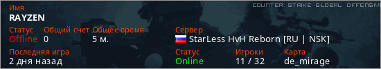 Играет на Counter Strike Global Offensive сервере. Страна: РоссияПервый раз замечен 08:20 25.12.2025