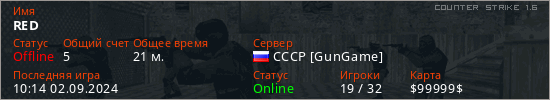 Играет на Counter Strike 1.6 сервере. Страна: РоссияПервый раз замечен 09:19 23.07.2024