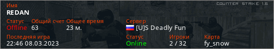 Играет на Counter Strike 1.6 сервере. Страна: РоссияПервый раз замечен 00:34 08.03.2023
