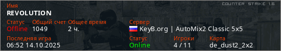 Играет на Counter Strike 1.6 сервере. Страна: РоссияПервый раз замечен 23:35 11.10.2024