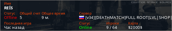 Последний раз был в сети 14 часов назад Игрок с таким ником замечен на 5 серверах